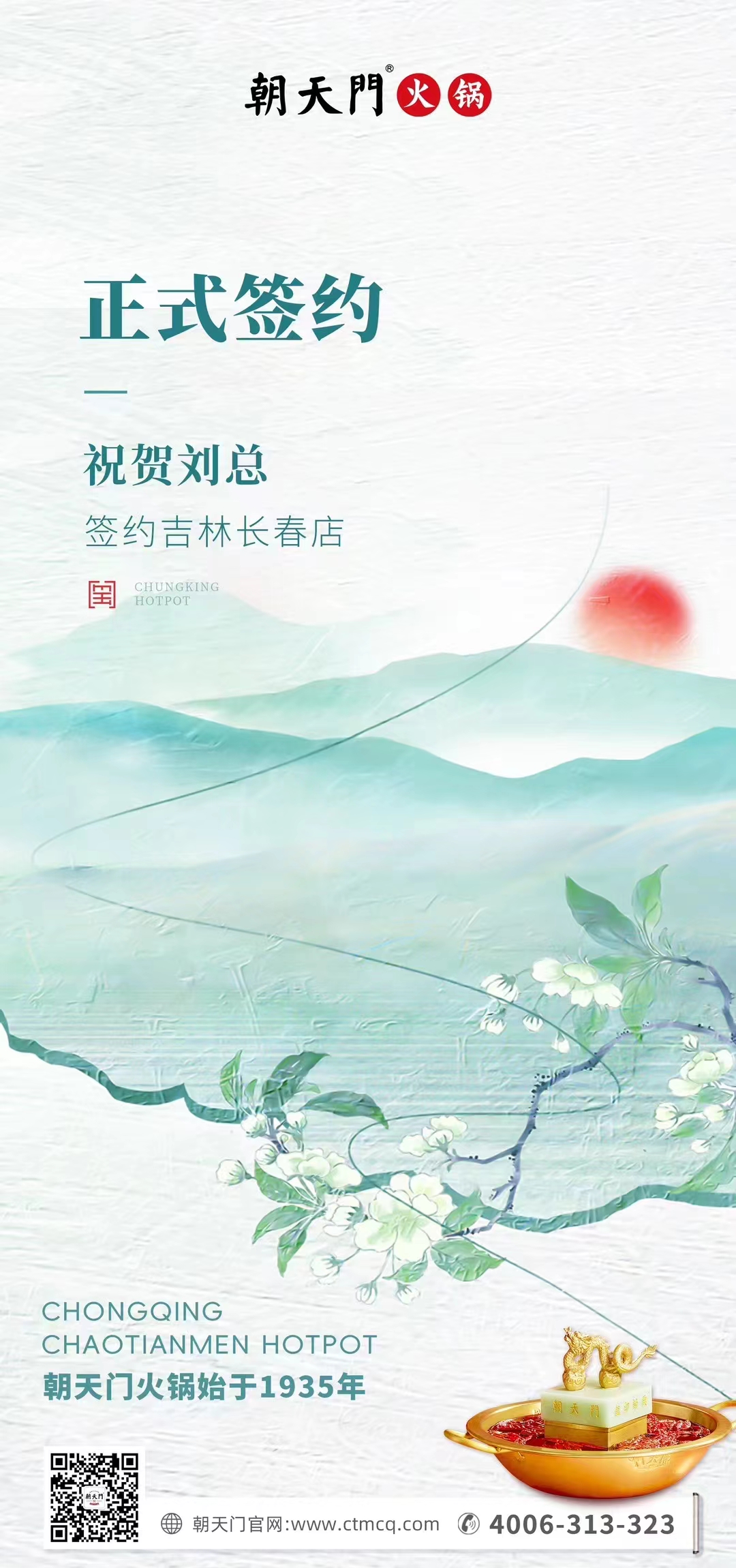 鑒于朝天門火鍋品牌優勢,劉總堅定地選擇了朝天門火鍋,朝天門也誠摯歡迎劉總,這樣一位優秀可靠的合作伙伴加入朝天門大家庭,相信在我們的共同努力下,朝天門吉林長春店將在當地餐飲市場大放異彩,紅紅火火,生意興隆!